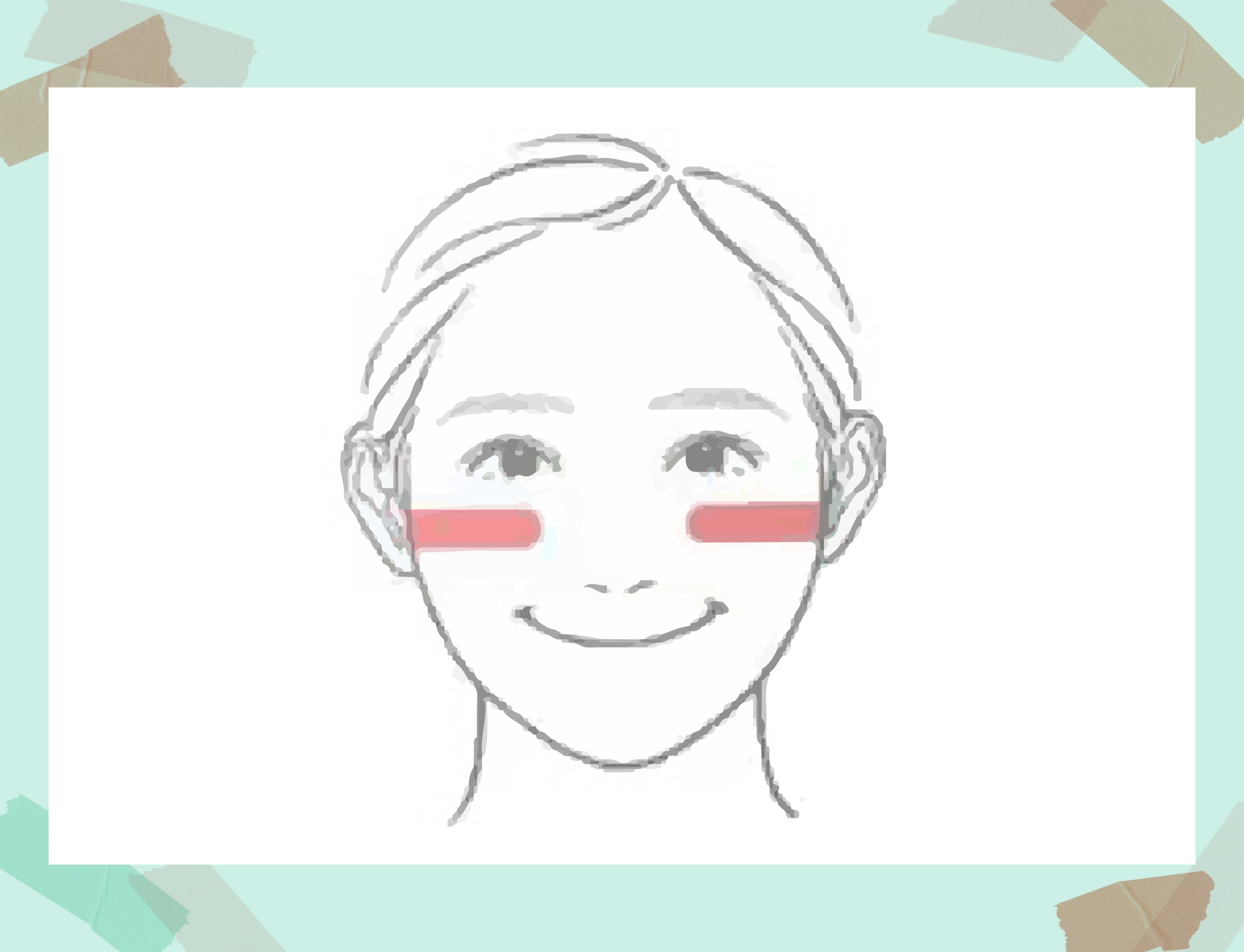 鏡に向かってニッコリと笑い、頬のいちばん高い位置を確認します。その「ニッコリ」を半分にするように、頬の中心から耳に向かって一直線に大胆にラインを引くように入れます。