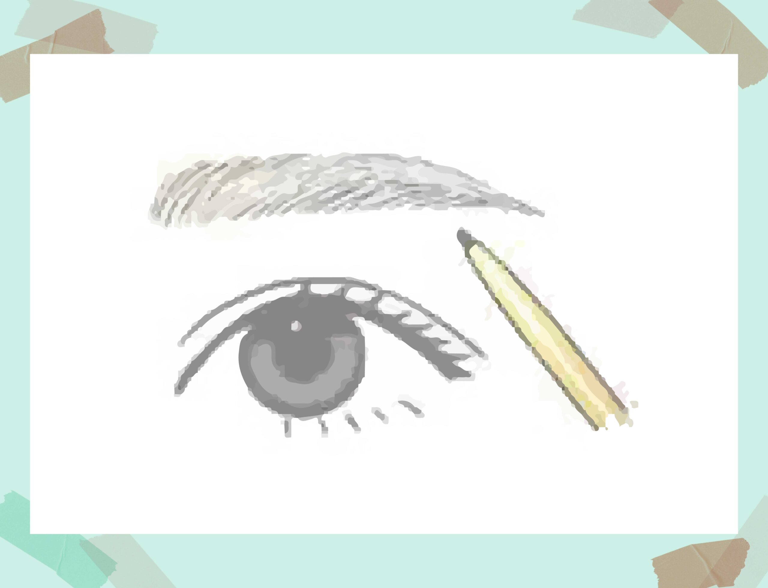 やや太さを残しながら、眉尻を小鼻と目尻の延長線上に合わせてまっすぐ横に少し長めに描くことで、目と眉の間の余白が埋まり、顔の下半分が引き締まって見えます。これが顔をリフトアップして見せる効果につながります。