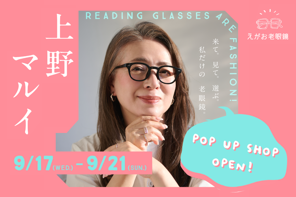 【期間限定ショップのお知らせ】上野マルイにて、『えがお老眼鏡』が9/17(水)~9/21(日)の期間限定でオープンいたします
